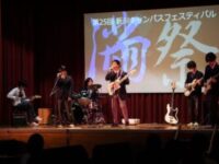 今フェスティバル・ステージ発表のために生徒7人でバンドを結成し、おいしくるメロンパンの「look at the sea」など、3曲の演奏をしました。3曲目では教員もサプライズで参加し、会場は大いに盛り上がりました。